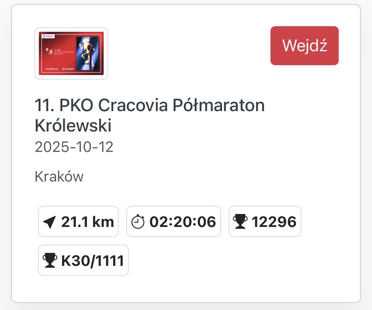 The first half went so smoothly that I almost didn’t believe it. I felt strong, steady, and genuinely happy. And running through Cracow definitely helped — the city was stunning. Passing by its historic streets and lively crowds distracted me from thinking about how hard it actually was to run. The beauty around me made every kilometer feel lighter.